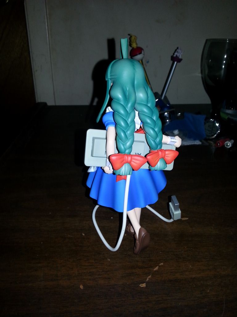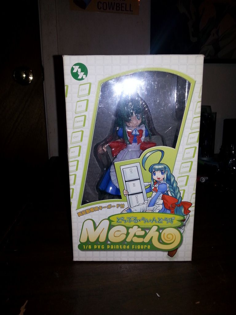 Behind; showing the keyboard. Admittedly not as well designed as XP, making me think ME-tan came first (She doesn't have a stand; instead, the wire from her keyboard is used to help support her). Still would love to get one of 2k-tan, but the chances of finding one of her is as slim as finding any merch of Iffy from Hyperdimension Neptunia :\