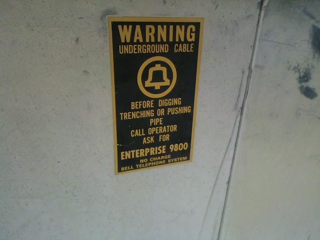 Bell Labs strikes again. While my sister was talking to the officer about the wreck we were just in, I was walking around the parking lot of the gas station we parked in and happen to notice this sign notifying of an underground cable...and a certain symbol that brings Bella to mind >w>;