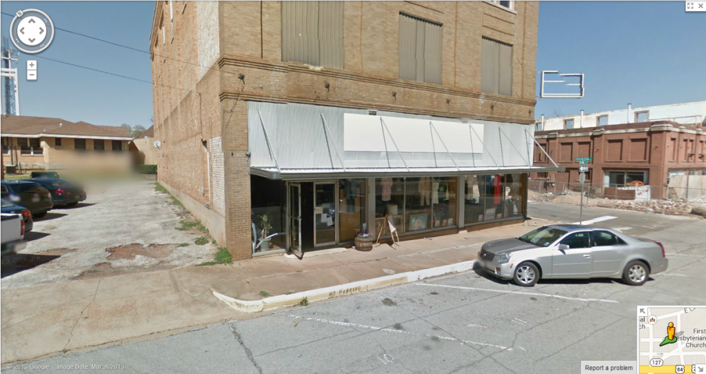 This is what it looked like prior to the fire (A pic Google Maps had from earlier in the summer; when a new, smaller thrift store had just moved into that building)