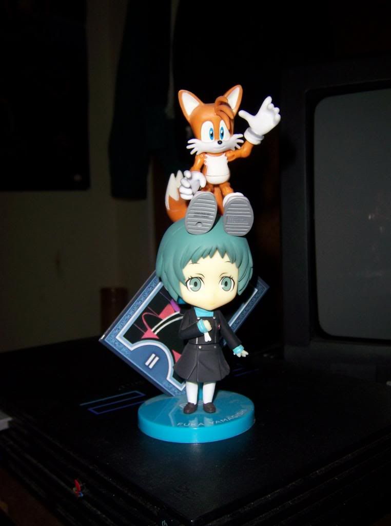 Tails and Fuuka together, intended as a nod toward this meme pic with Buzz and Woody ("Crappy sequels; crappy sequels everywhere")