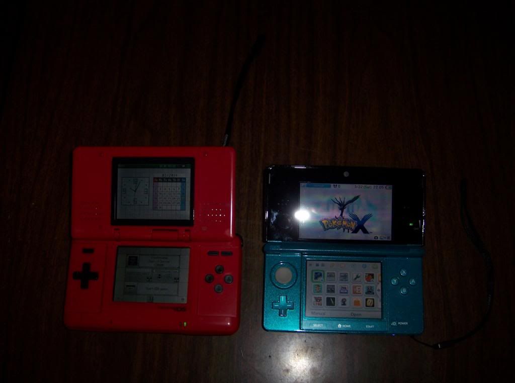 The Mario Kart Red DS I bought for $10, next to my Aqua Blue 3DS