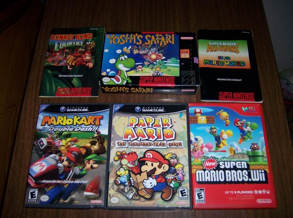 The games. The top 3 items came from Game-X-Change (Yoshi's Safari is complete in box and honestly looks like it was never played), while the bottom 3 came from a community garage sale (Still psyched about getting Paper Mario: TTYD for $3, and although I already have NSMB, my sister said she wants it)
