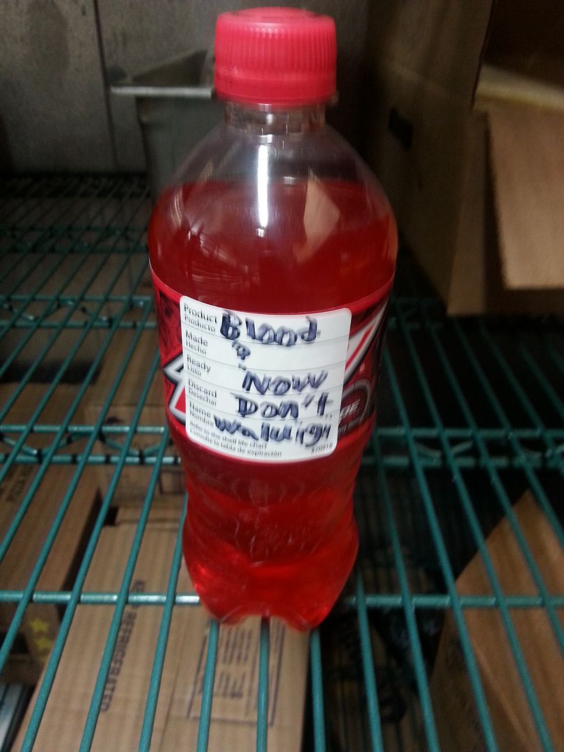 My bottle of Mountain Dew Code Red, I put in the cooler at work