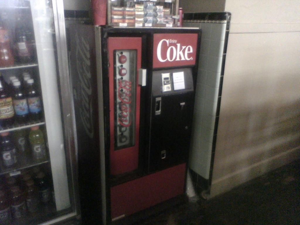 Vintage Coke vending machine at the hardware store my grandpa just retired from. It strongly resembles the one that was at the hardware store he ran when I was little :3